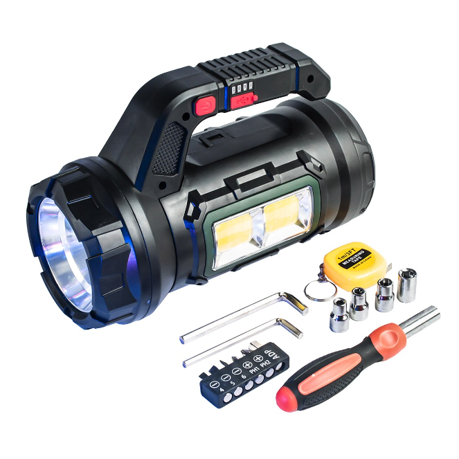 ✔ Lanternă + trusă de scule într-un singur produs